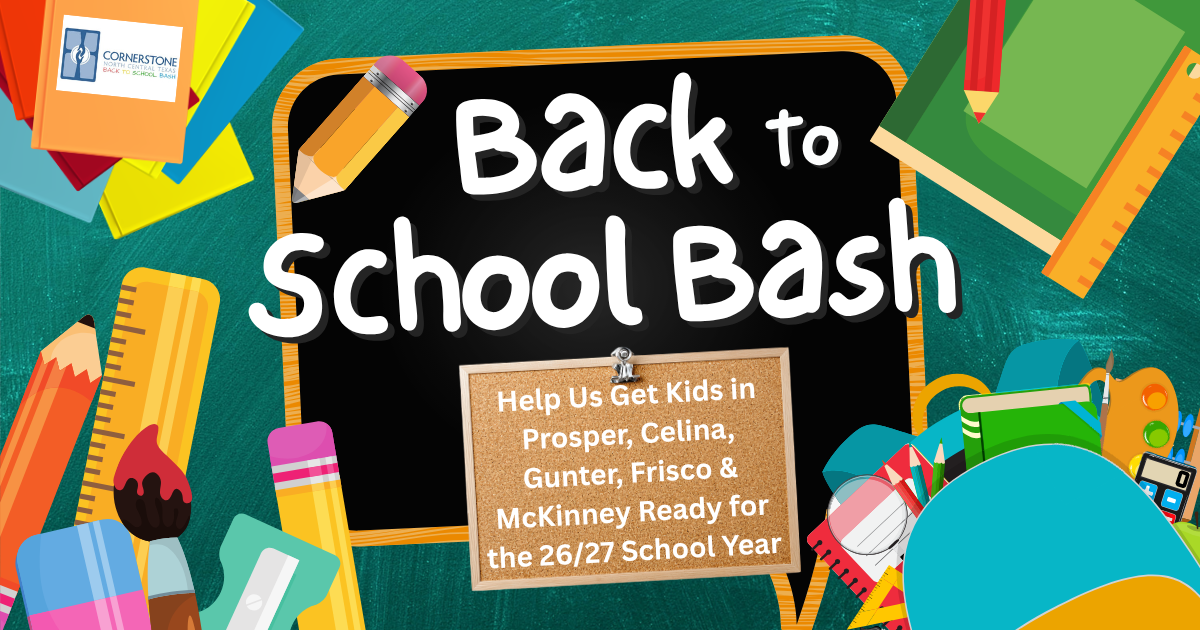 Back to School Bash is our annual event serving students and families across Prosper, Celina, Gunter, Frisco, and McKinney. Through this event, we provide backpacks filled with school supplies specific to each child’s school and grade, along with spirit wear and brand new sneakers—helping every student start the year confident and prepared.